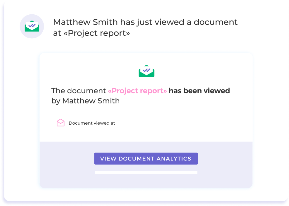 Stay up to date via push and email notifications that let you know exactly when someone opens your PDF document.