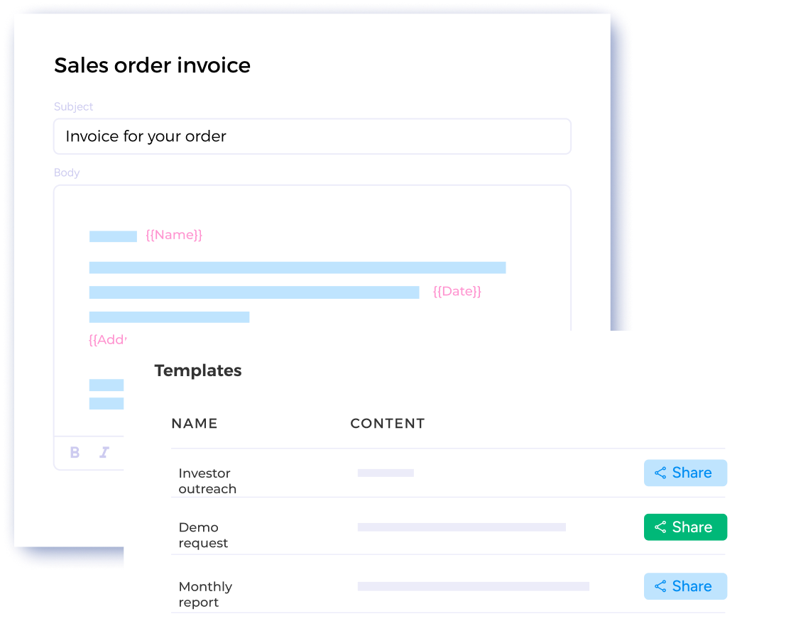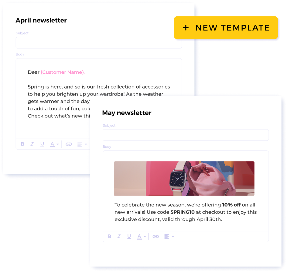 Create templates directly in your Mailsuite dashboard and edit them whenever you need to. Save yourself time by creating a template and sending it to as many people as you want, all in a few clicks.